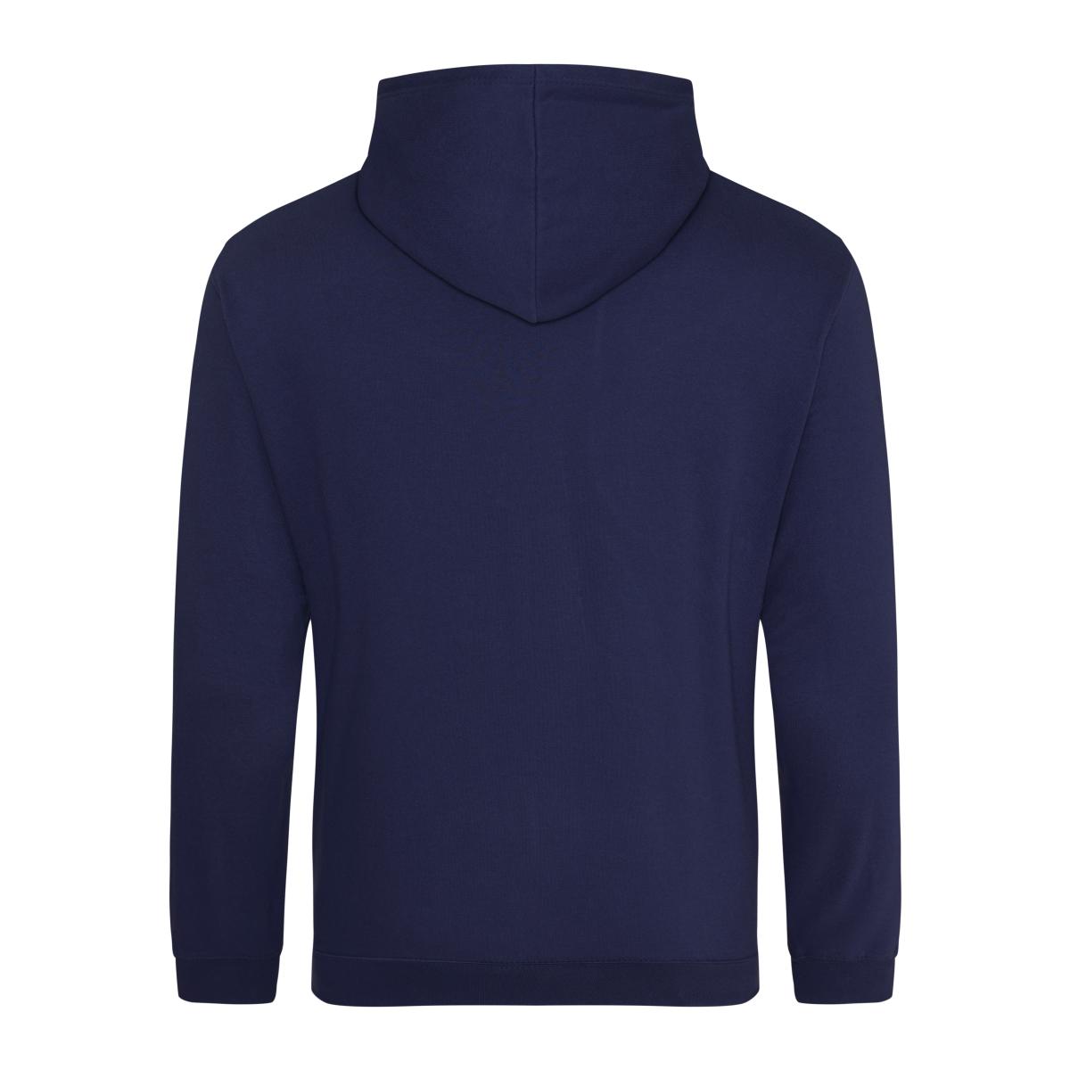 A relaxed-fit college hoodie made from durable 280gsm cotton-faced fabric for a soft, comfortable feel. Features include a double fabric hood, kangaroo pouch pocket, ribbed cuffs and hem, and twin needle stitching for added durability. See sizing information below; size up for a baggier fit.